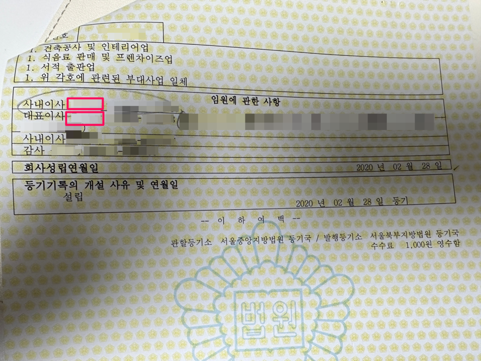 대표이사 ooo (주민등록번호-0000000) 옆에는 주소를 꼭 적어주기