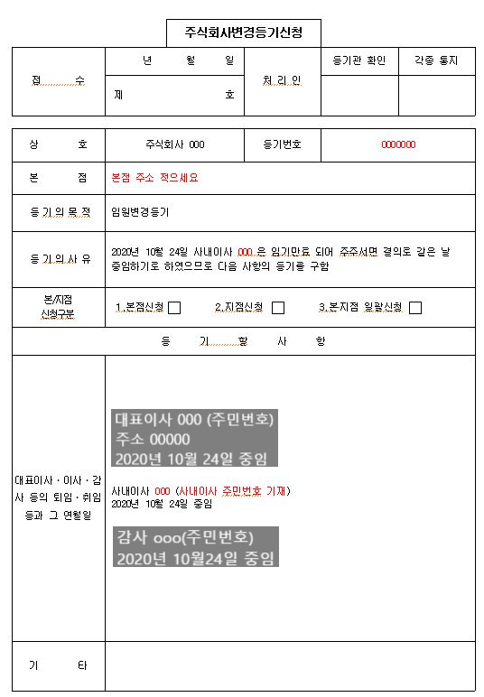 법인 임원중임등기 양식 첨부